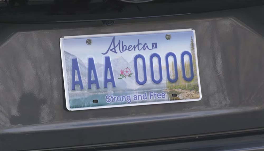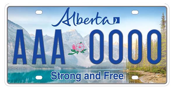 現行車牌設計於 1984 年推出,首次採用「Wild Rose Country」與紅白配色。