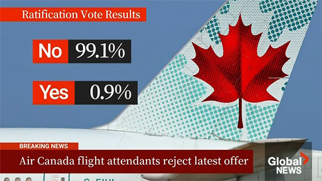 Air Canada flight attendants vote to reject airline’s wage offer