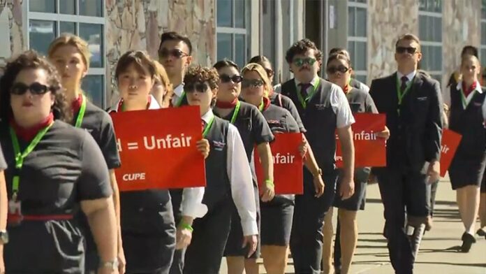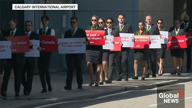 工會聲稱,由於工資率低且有大量無償工作,一名全職初級空服員的年薪低於聯邦最低工資,僅約27,000加元。