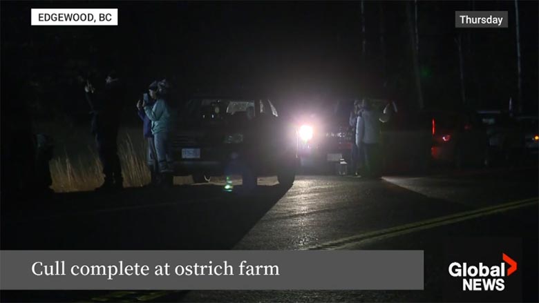 加拿大食品檢驗局(CFIA)於上週執行了撲殺令,證實該群約300至330隻鴕鳥已被槍殺。