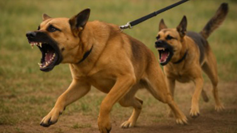 她說:「有兩隻黑色德國牧羊犬,牠們很大,正在舔她的大腿內側並咬她。」並補充有一第三隻棕色的狗站在旁邊。