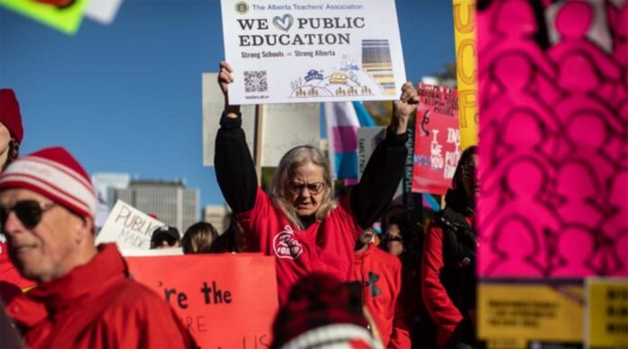 亞省教師在罷課的第四天走上街頭。