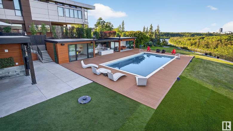 物業規格:物業同樣鄰接北沙斯卡寸旺河,並附帶戶外泳池、泳池屋及火坑。室內配置 5 房 6 衛,設有主廚廚房。地下室規劃為娛樂區域,包含電影院、桌球室、酒吧及辦公室。該物業具備可眺望市中心景觀的地理優勢。