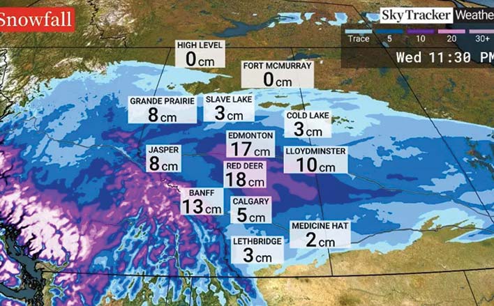 卡加利週三上午亦將迎來降雪,降雪量約為 2 至 5 厘米。預計下午天氣將轉晴。