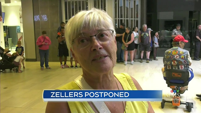 愛民頓 Londonderry Mall 購物中心原本預計於週一(9月1日)開幕的Zellers百貨,因故延期。