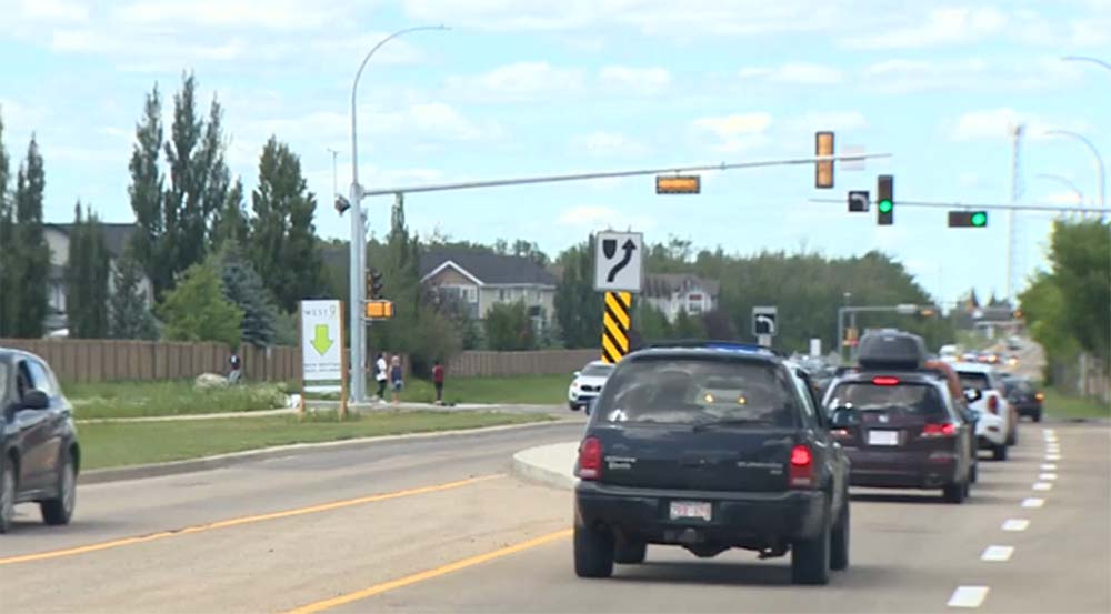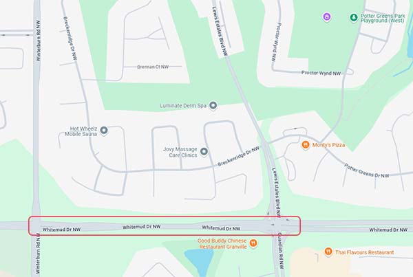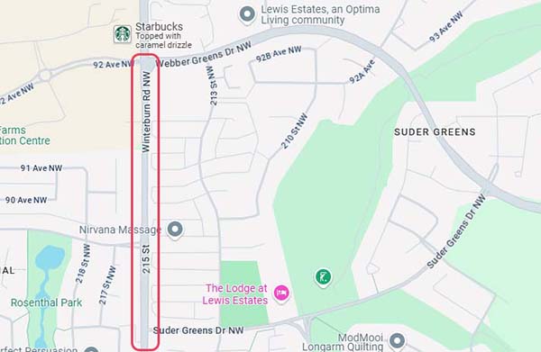 位於愛民頓 West End (西區末) 的 Winterburn Road 與 Whitemud Drive 的交叉口,在週末時段交通通常非常繁忙。