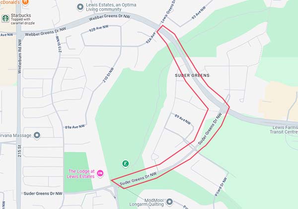- Whitemud Drive 由 Lewis Estates Boulevard 至 215 街以東的西行線;