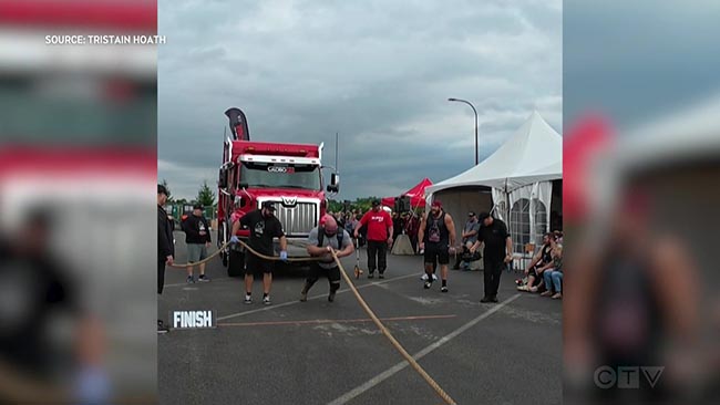 其中一項比賽是拉動一輛裝滿混凝土塊、重達35,000磅(約1.58萬公斤)的泥頭車。