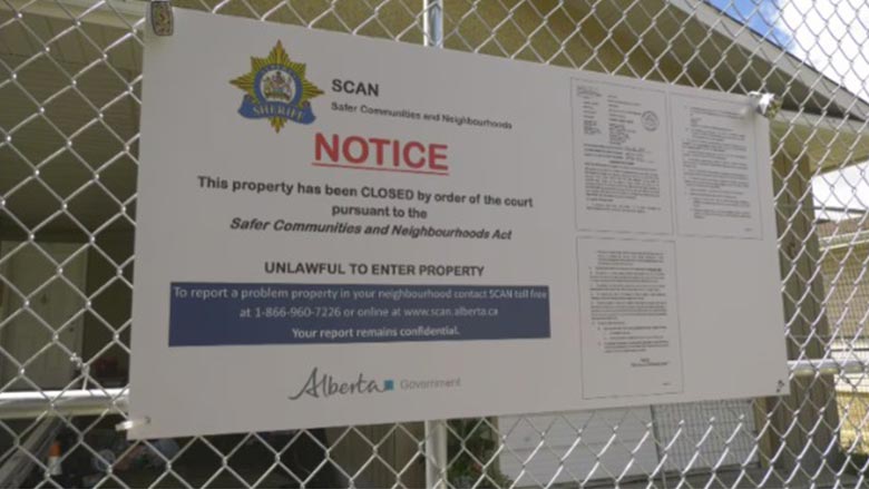 亞省治安官轄下的「更安全社區及鄰里行動組 SCAN」(The Safer Communities and Neighbourhoods),獲得法院命令,勒令位於愛民頓東南區 Mill Woods 6707 – 32 Ave. 的物業關閉 90 天。