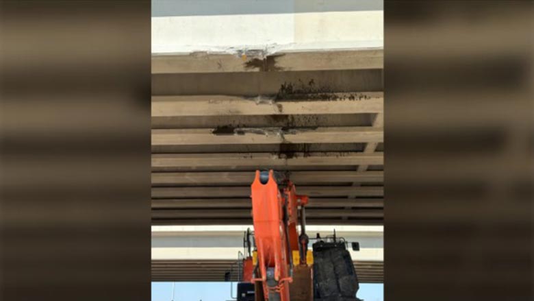 2023 年 6 月,一輛運送挖掘機的半掛卡車撞上該天橋底部,造成嚴重損毀。