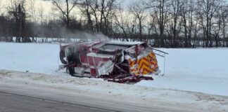 凍雨襲亞省北部路面變冰場 消防車亦失控翻側