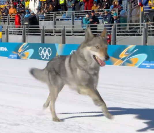 狗狗意外闖入冬季奧運賽 還第三名到達終點 成為全場焦點