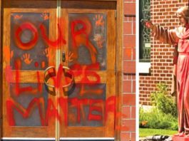 國慶日當天卡加利至少有10間教堂被塗上紅油破壞