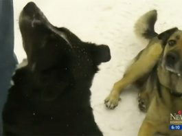 愛民頓男子剛好路過, 拯救了兩隻誤墮冰池塘的狗狗 (有影片)